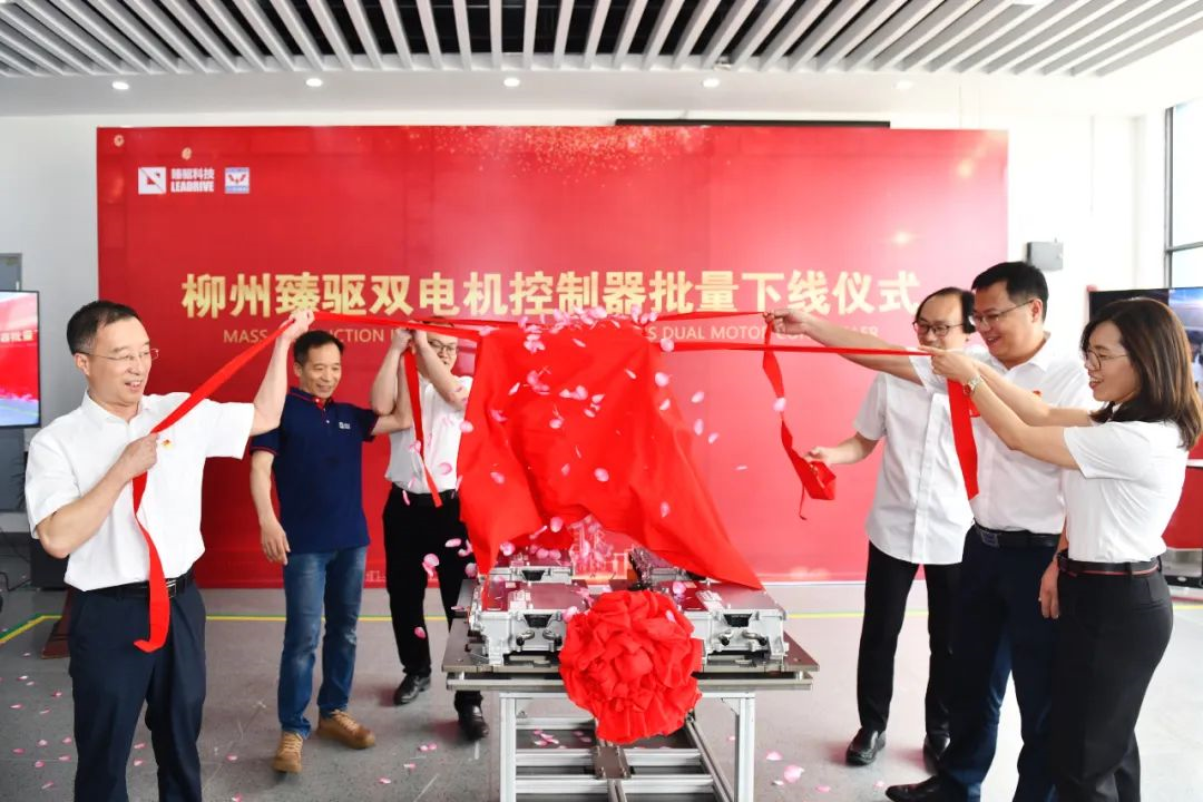 2022年5月26日,搭載臻驅科技自研車規級功率半導體模塊的全新一代雙電控正式量產上車!批量下線儀式在柳州圓滿舉行。五菱柳機動力有限公司總經理李環宇及相關領導共同出席,臻驅科技(上海)有限公司董事長兼總經理沈捷及核心團隊遠程視頻參與了本次儀式。