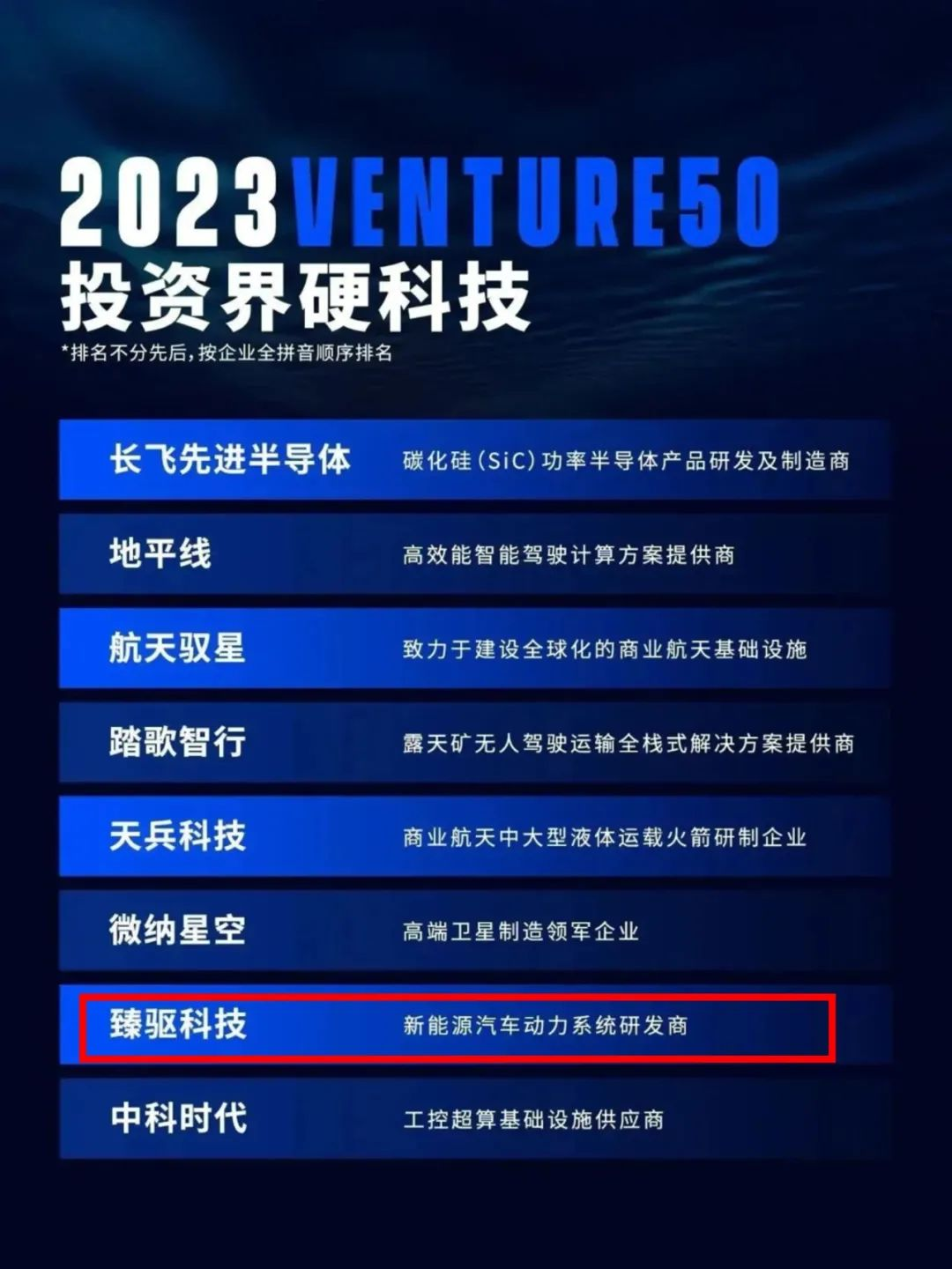 臻驅科技榮膺2023年Venture50硬科技50強