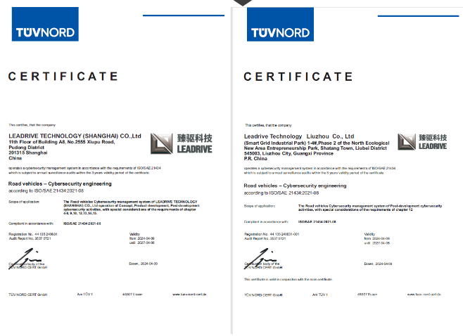 2024年5月11日,臻驅(qū)科技(上海)有限公司(以下簡稱“臻驅(qū)科技”)正式通過《ISO/SAE 21434道路車輛-網(wǎng)絡(luò)安全工程》(以下簡稱“ISO/SAE 21434”)汽車網(wǎng)絡(luò)安全管理體系認(rèn)證,獲得此證書標(biāo)志著臻驅(qū)科技已經(jīng)建立了完整的汽車網(wǎng)絡(luò)安全管理體系,具備了產(chǎn)品網(wǎng)絡(luò)安全開發(fā)和管理能力,是公司體系建設(shè)中又一關(guān)鍵里程碑。